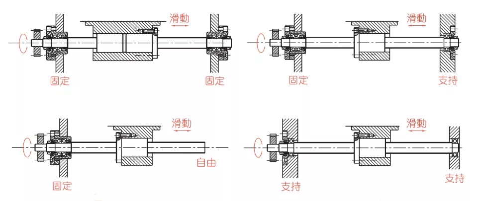 以上,基本確定了滾珠絲杠的類型。最后,根據(jù)需要使用的行程和上述螺釘?shù)陌惭b方法,確定螺釘?shù)拈L度,就可以了。
