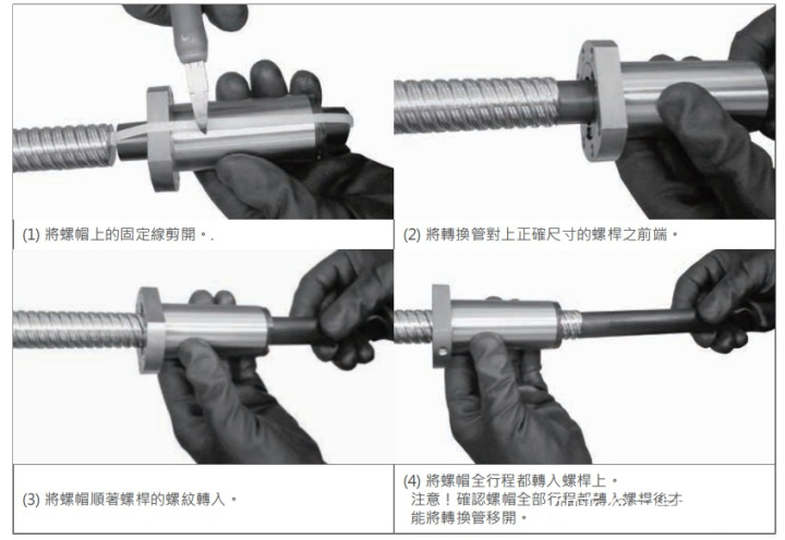若您訂購之產(chǎn)品為轉(zhuǎn)造級單出螺帽,請依下列步驟進行裝配: