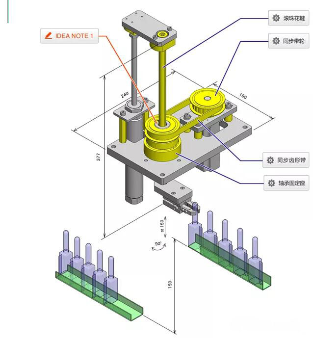 在傳送線上轉(zhuǎn)換工件的方向,轉(zhuǎn)移到下一道工序。