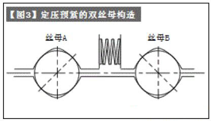 4、墊片方式:在兩個(gè)絲母構(gòu)造之間加入預(yù)緊量的墊圈(墊片)進(jìn)行預(yù)緊的方法