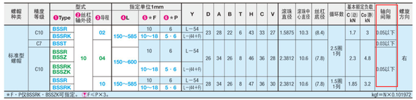 經(jīng)??唇z杠的選型目錄的設(shè)計(jì)師們會(huì)了解,在選型中我們會(huì)看軸向間隙,不同的種類和型號(hào),軸向間隙是不同的,可以參考下圖